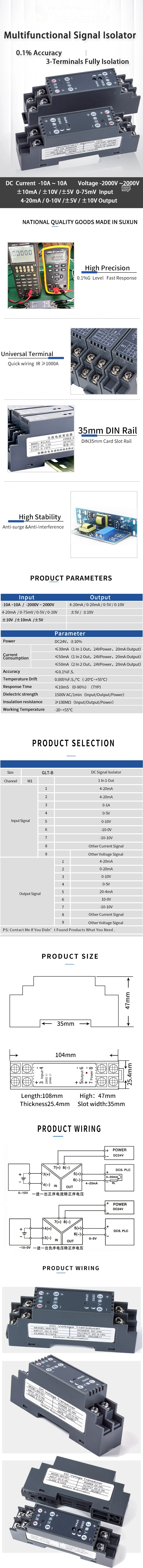 GLT-B DC signal isolation transmitter input 0~75mV/4~20mA/0~10V output 0~5V/-0~10V/20~4mA Multiple signal customization