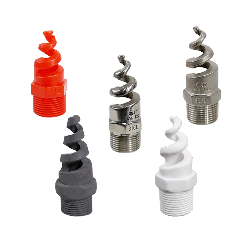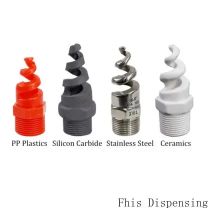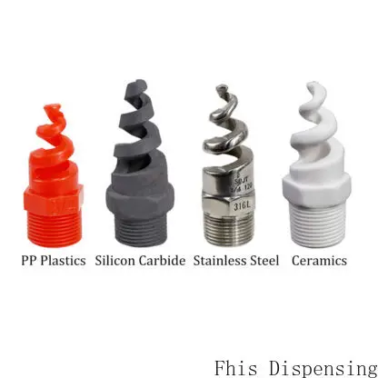 The spiral nozzle can be made of brass, 304 / 316 stainless steel, PP plastic, ceramic, silicon carbide, Teflon Teflon, PVDF polyvinylidene fluoride and other materials to meet the diversified application requirements.