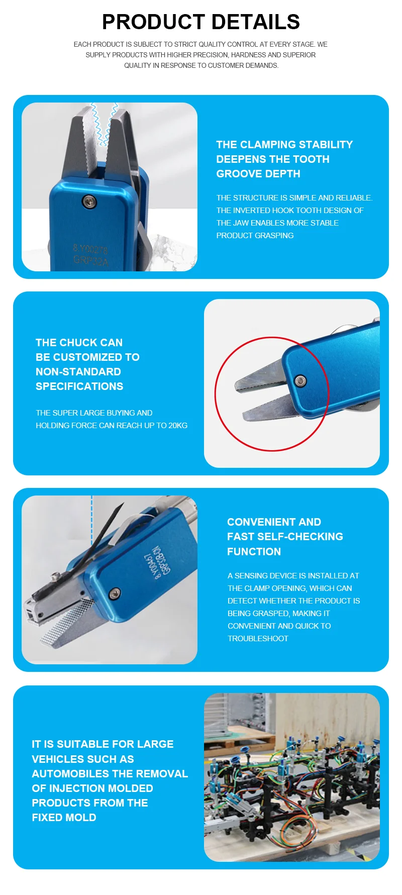 CRG Aluminum Alloy Finger Grip Gate Clamp with Silver Color and Powerful Clamping Force System for Mechanical Arm EOAT Accessory