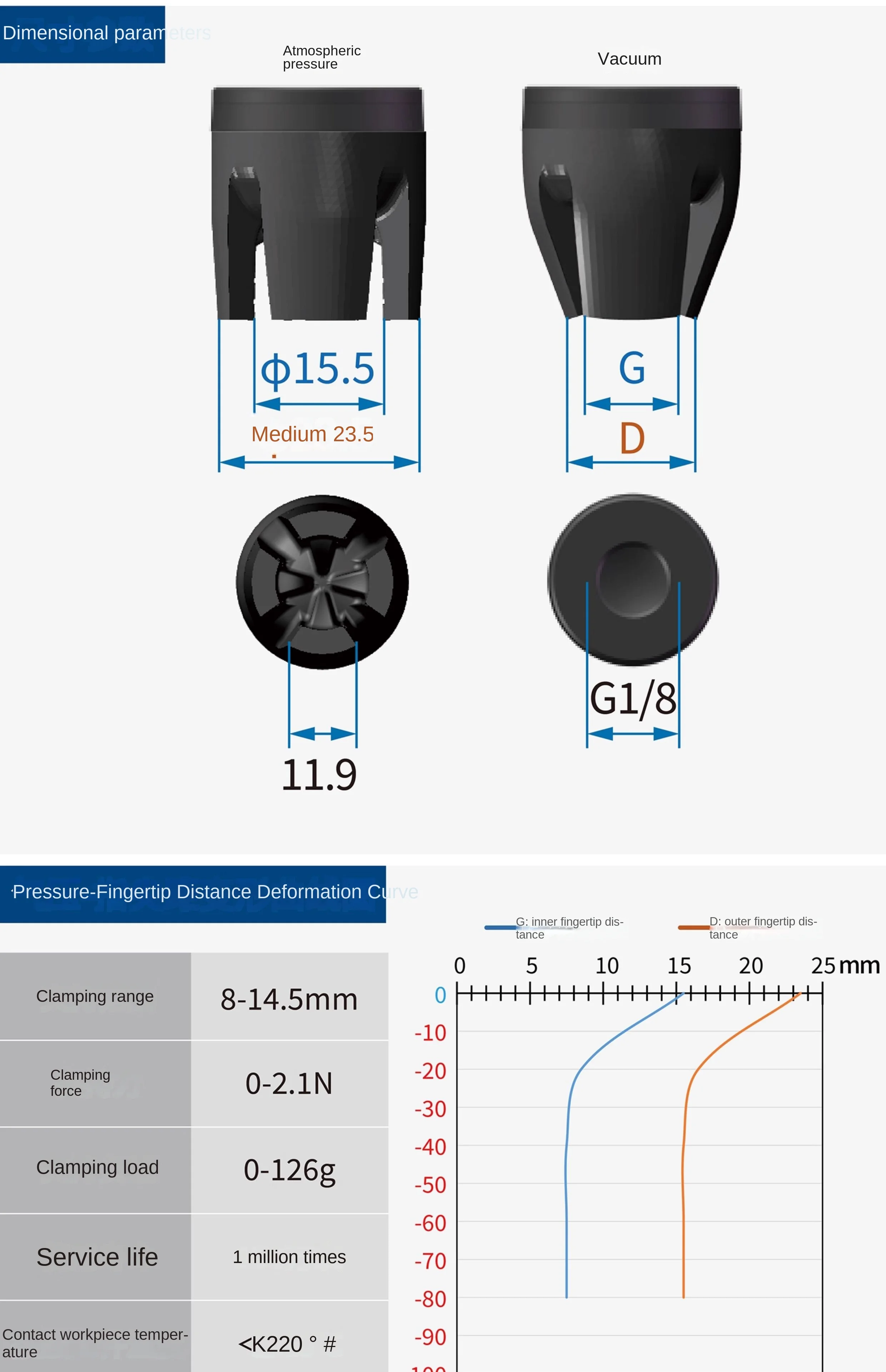 BM-F4G27[HB]/SN Pneumatic Manipulator High Temperature Resistance Negative Pressure Flexible Two-Finger Touch Rubber