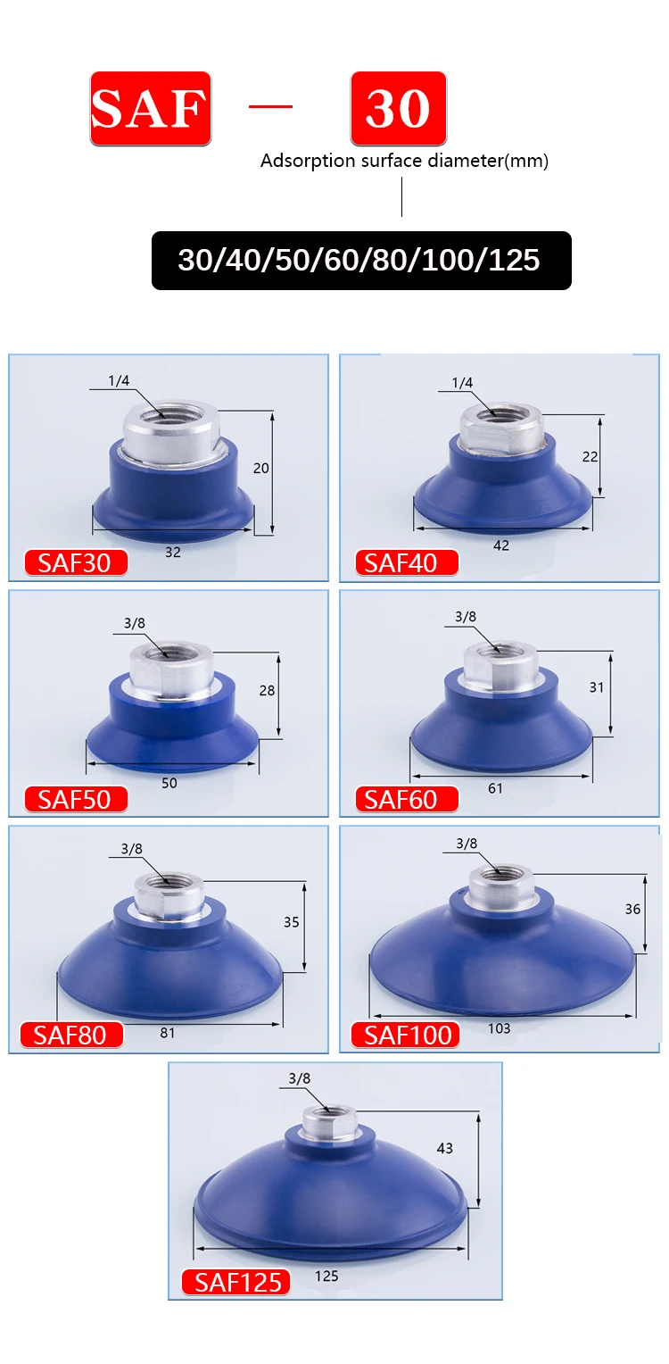 Corrugated Vacuum Suction Cup Powerful Suction Nozzle Robot Accessories Pneumatic Accessories Silicone Suction Cup SAF