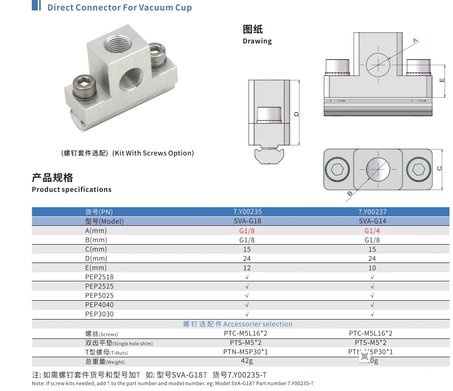 SMBE7 SMBE8 SMB-A5G18 SVC SVA Series Manipulator Accessories Heavy Duty Fixed Support Fixture Profile Cylinder Connector