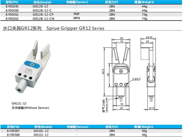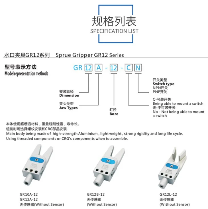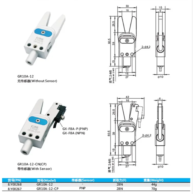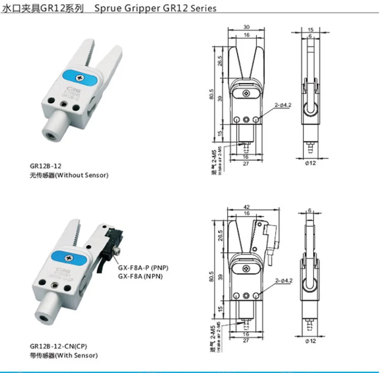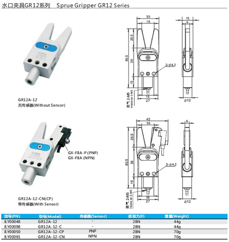 CRG manipulator mini nozzle clamp GR12/10 mini pneumatic gripper clamp with proximity switch clamp