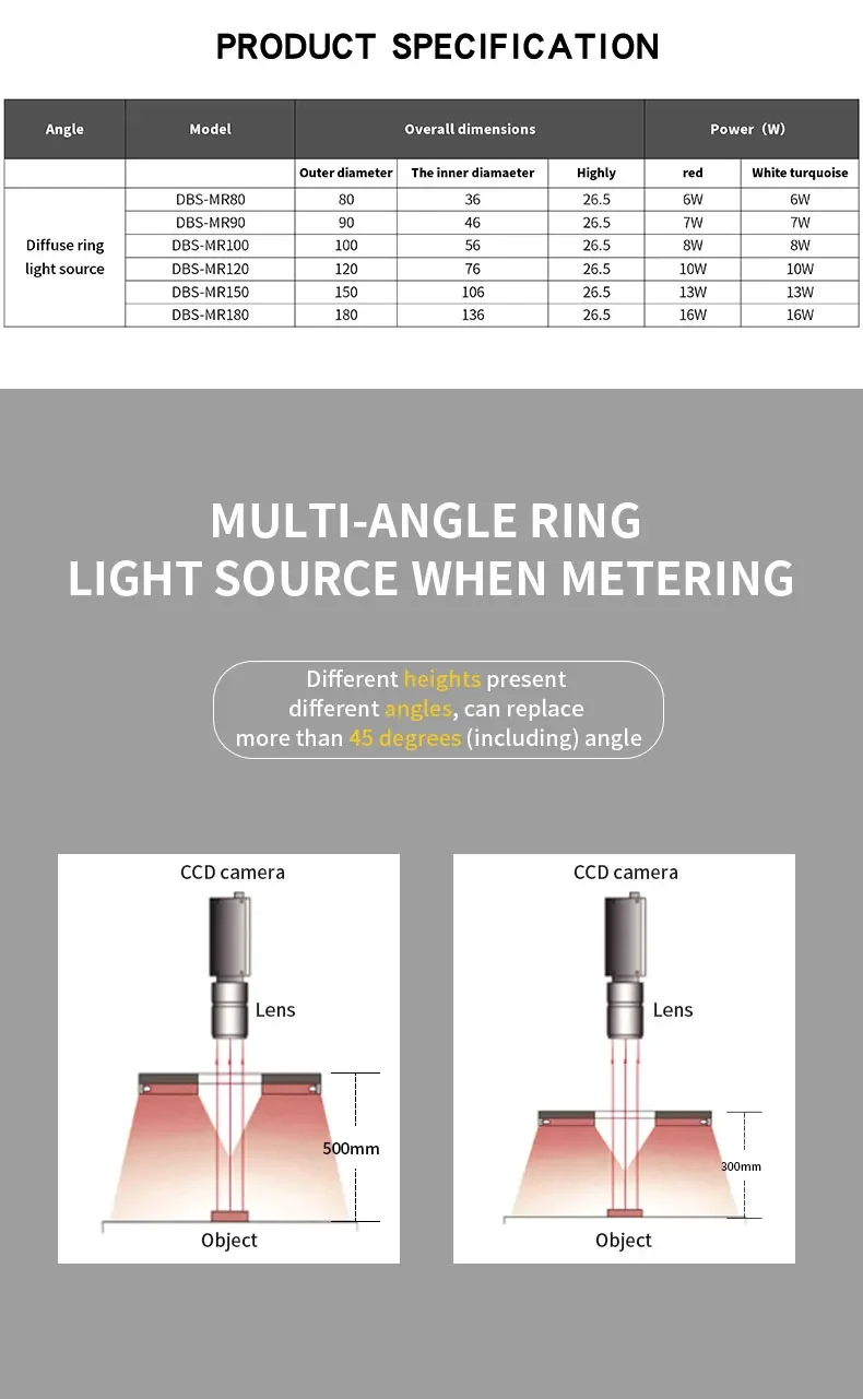 [Diffuse Reflection Light Source] Multi-Angle Ring-Shaped Industrial CCD Machine Vision Light for Automated Recognition