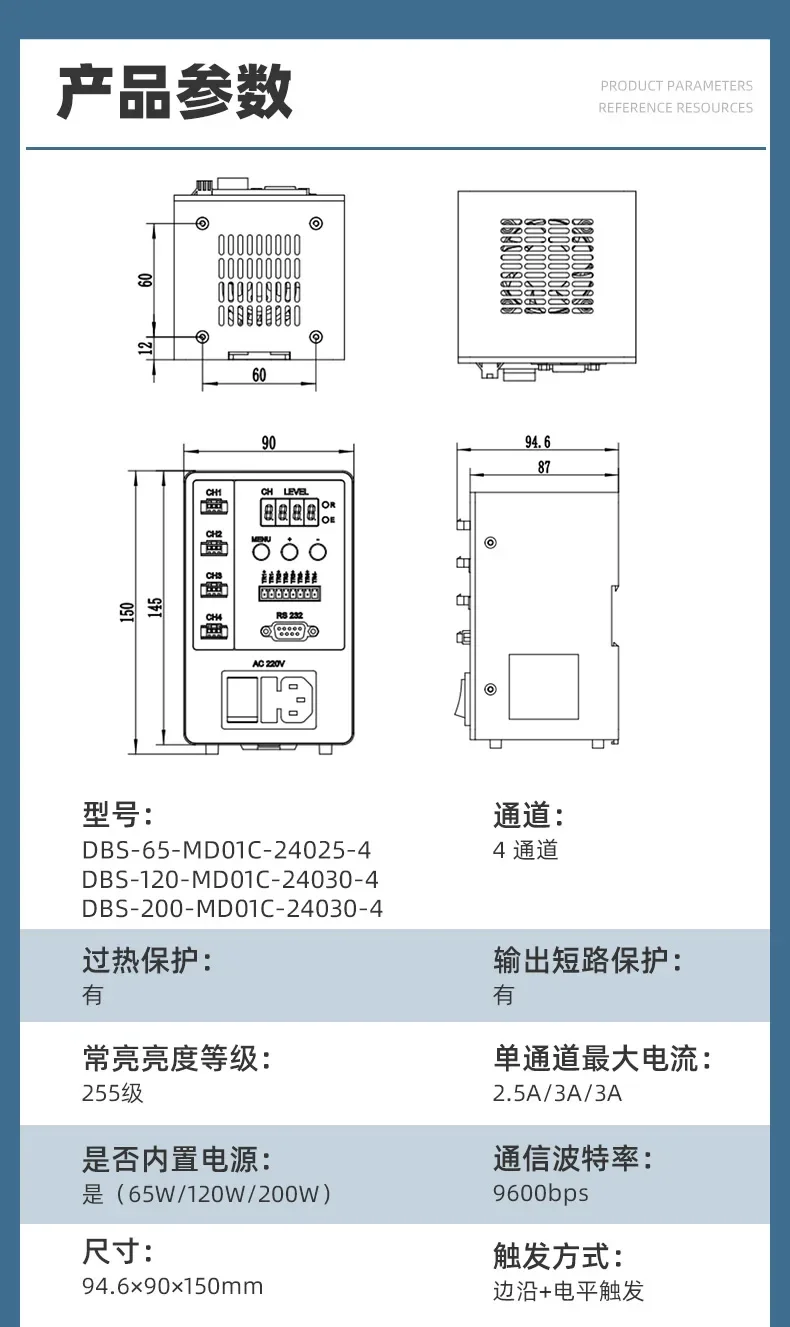 2/4-Channel External Power Digital Controller - Machine Vision Standard Vision Light Brightness Dimmer