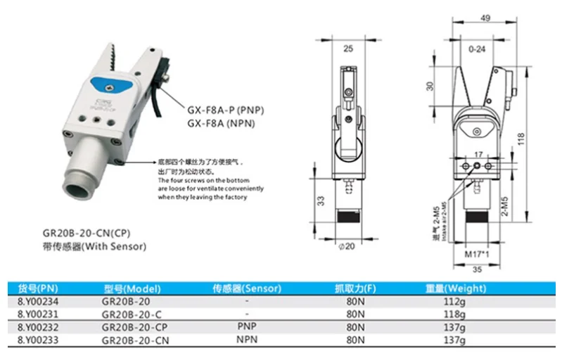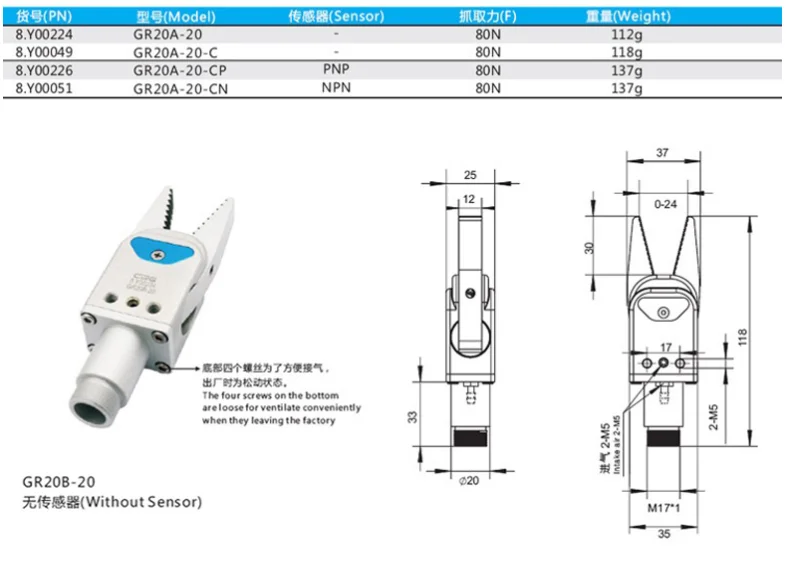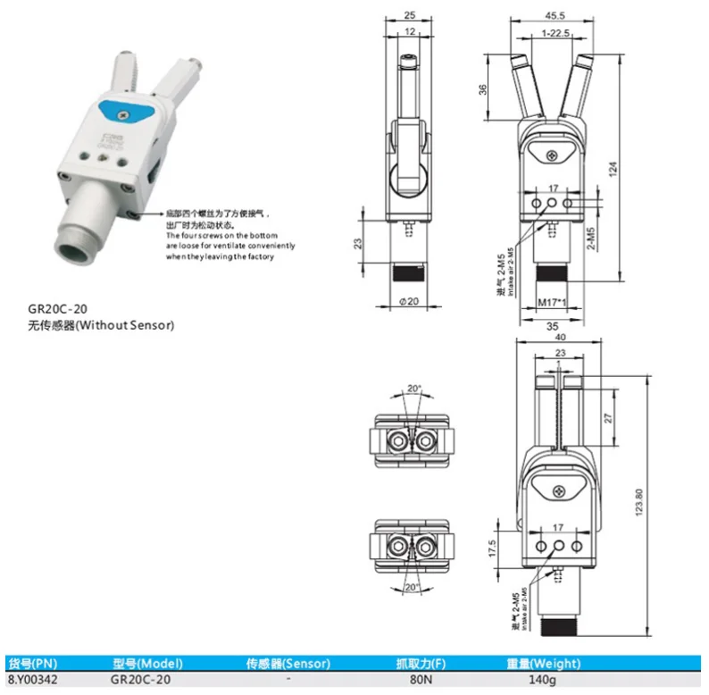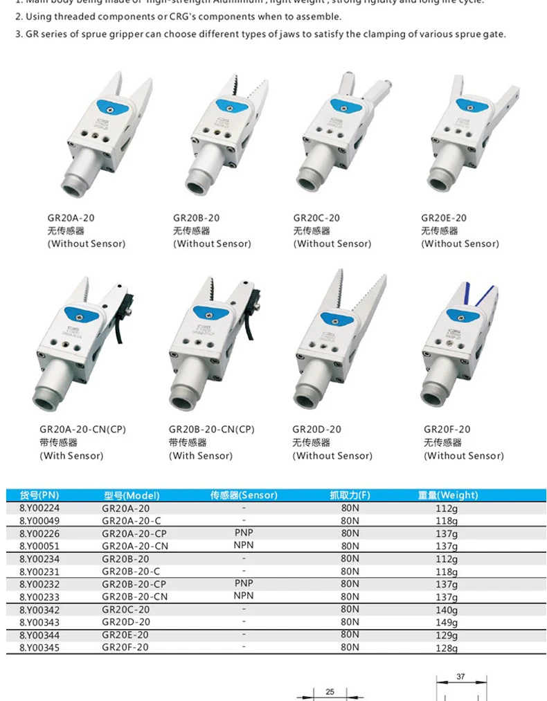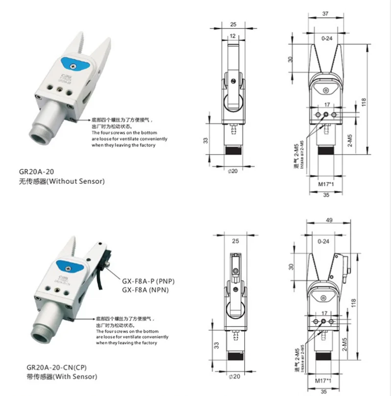 CRG Pneumatic Accessories Cylinder Jaw Mini Clamp GR20B-20-CP Injection Molding Machine Manipulator Nozzle Clamp Induction