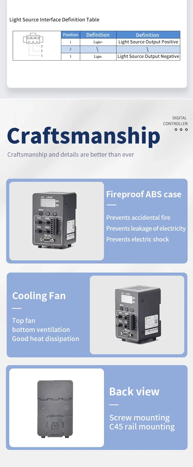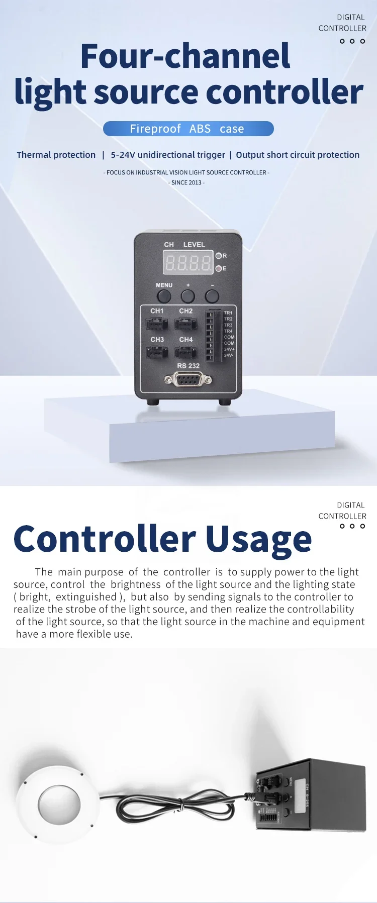 High Precision LED Dimmer | Digital Machine Vision Light Source Controller | External Power Supply Industrial Adapter