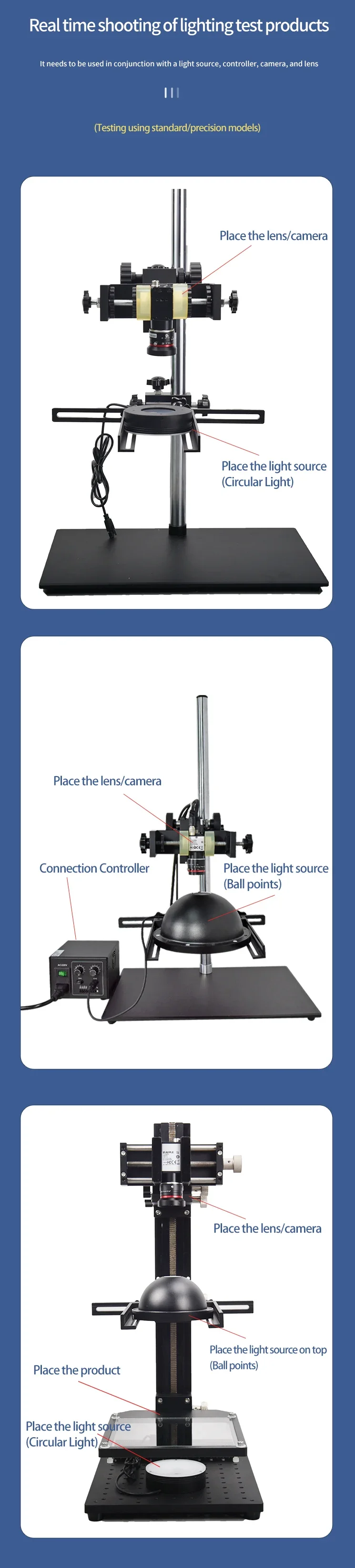 Industrial Machine Vision Fine-Tuning Stand | CCD Camera & LED Light Source Mount for Inspection
