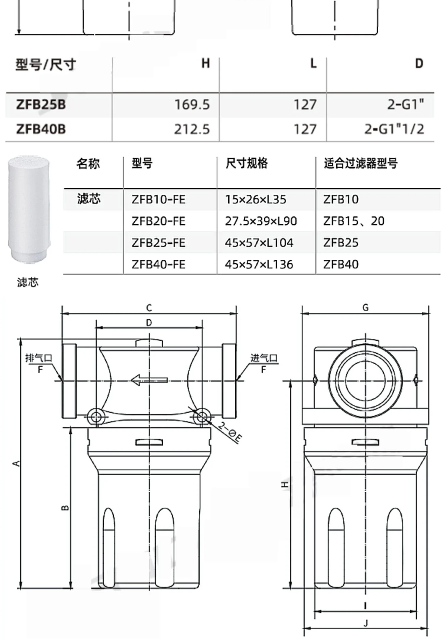 High precision vacuum pump filter cartridge ZFB/ABF-10-15-20-25-40