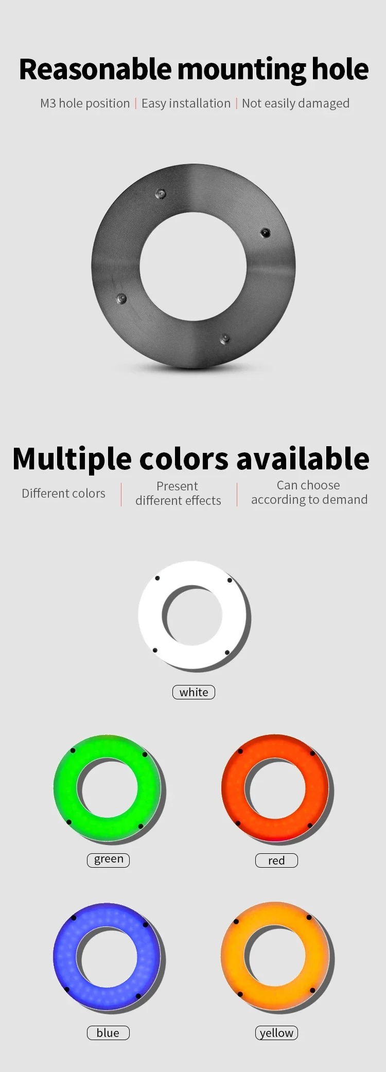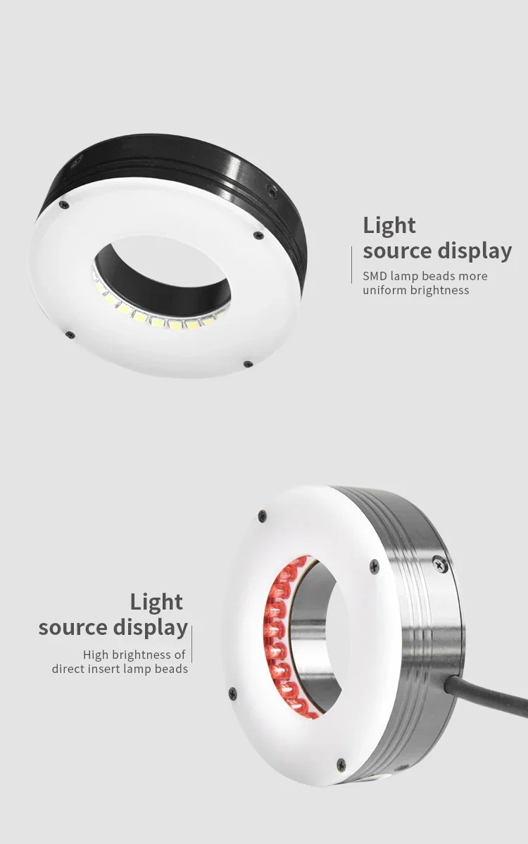 Featuring M3 screw hole positioning, it enables simple and firm installation without easy loosening. The inner diameter, outer diameter, and thickness of the ring light can be customized according to customers' equipment space, perfectly adapting to various industrial cameras, microscopes, and automated inspection platforms.