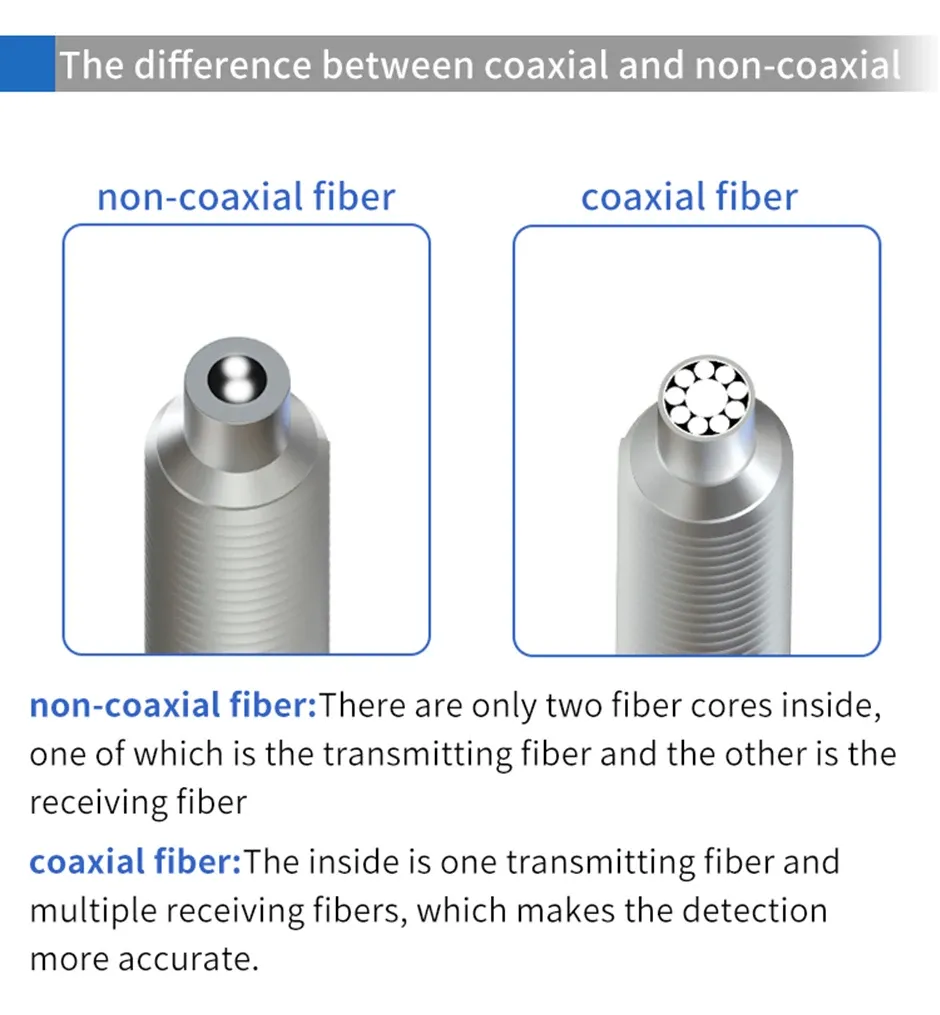 • Coaxial (PRC series): 1 transmit + multiple receive cores – delivers higher accuracy for precise positioning (e.g., aligning parts before welding).